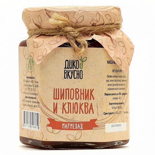Состав: шиповник, клюква, сахар, вода, пектин, регулятор кислотности лимонная кислота, консервант сорбиновая кислота.