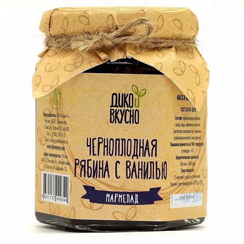 Состав: черноплодная рябина, сахар, вода, ванилин, пектин, регулятор кислотности лимонная кислота, консервант сорбиновая кислота.