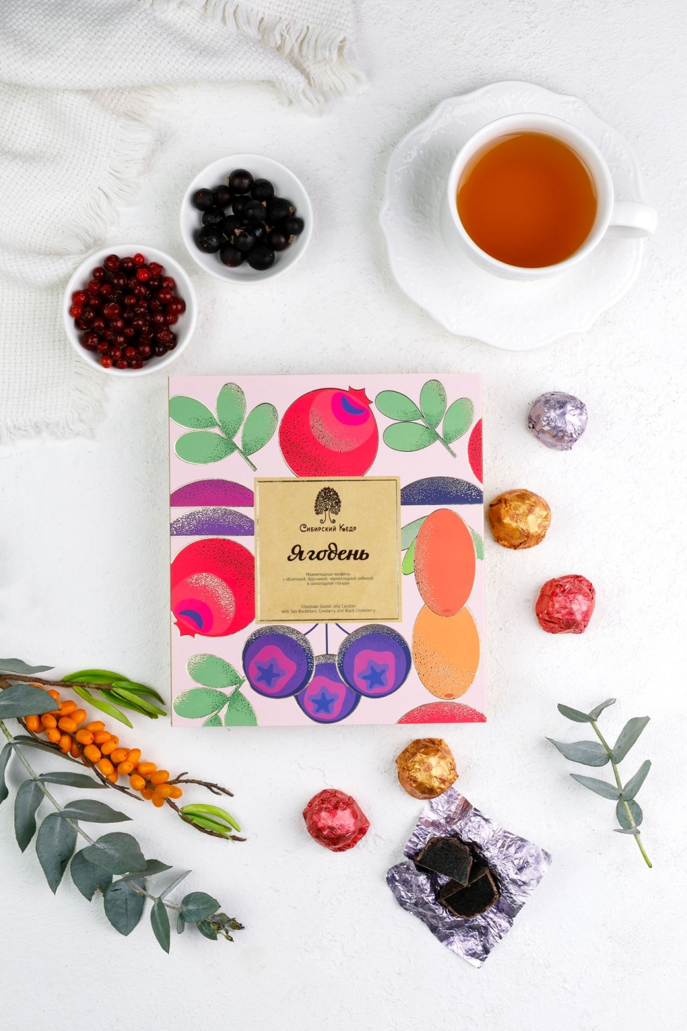 Это стопроцентно натуральный продукт на основе натуральных соков сибирских ягод: облепихи, брусники, аронии и яблочного пектина в шоколадной глазури.