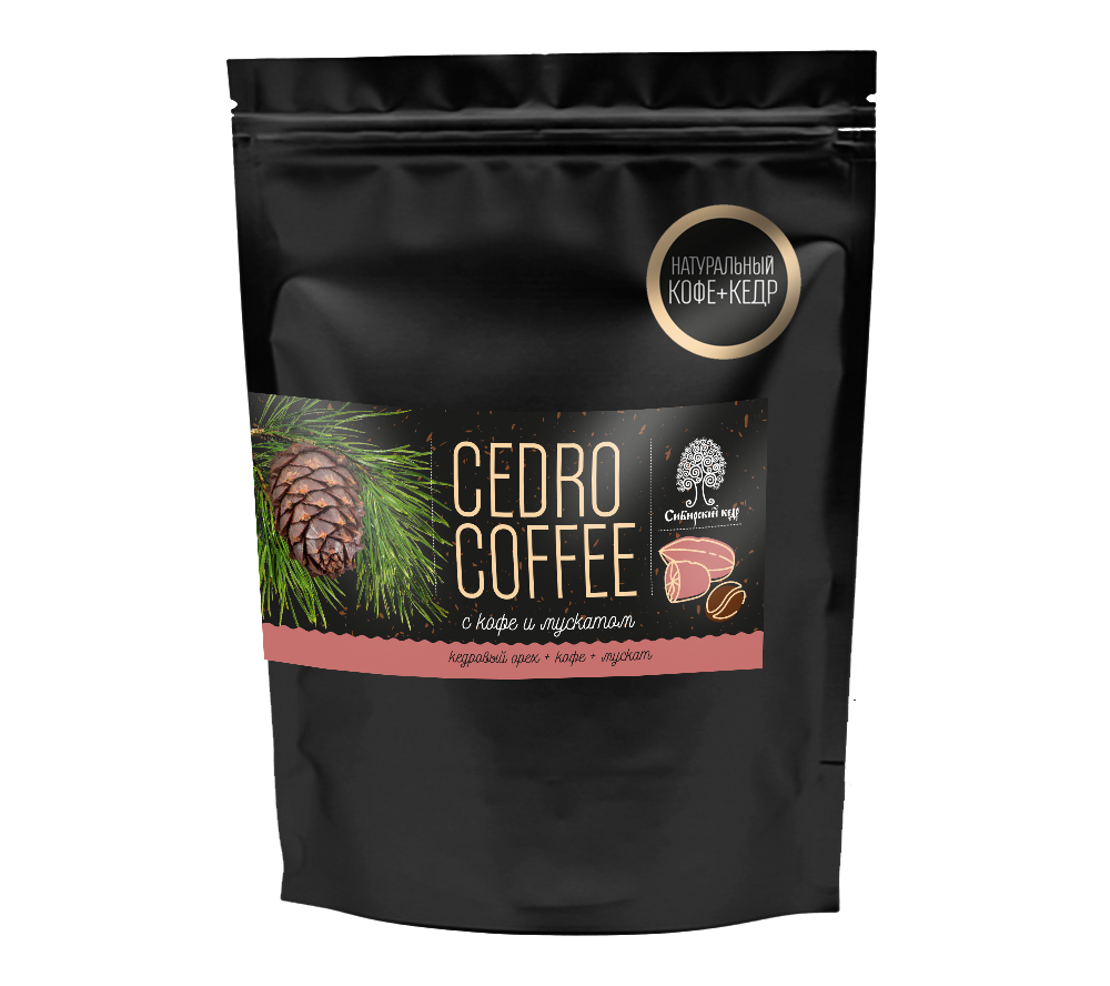 Состав: кедровый орех дроблёный, кофе молотый сорта арабика, орех мускатный молотый