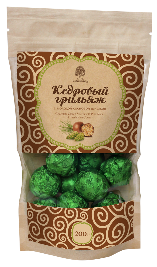 Кедровый грильяж с сосновой шишкой 200 г крафт пакет