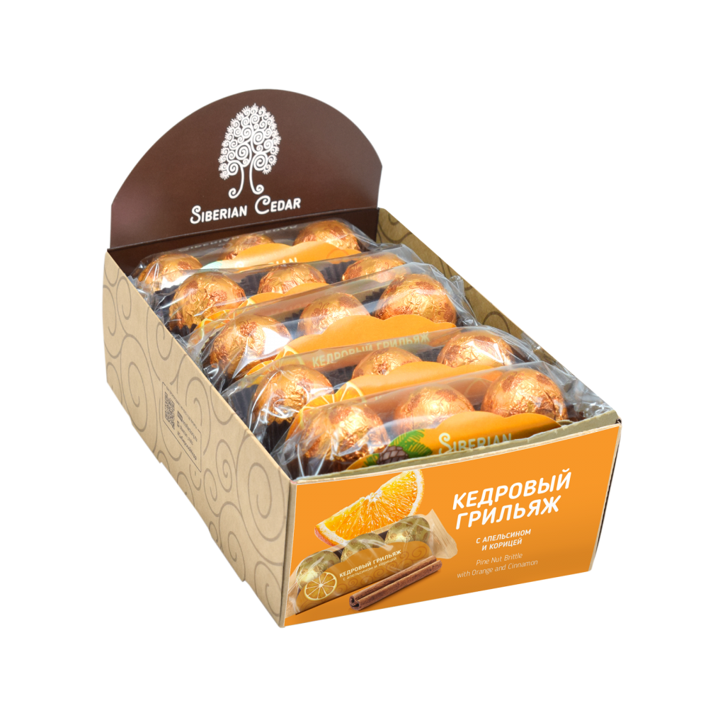 Кедровый грильяж с апельсином и корицей в шоколадной глазури 400 гр шоу бокс