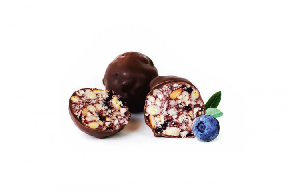 Состав: Шоколад 70% (какао тёртое, какао масло, сахар, ваниль), орех кедровый, кешью, натуральный мед, масло сливочное, черника вяленая.