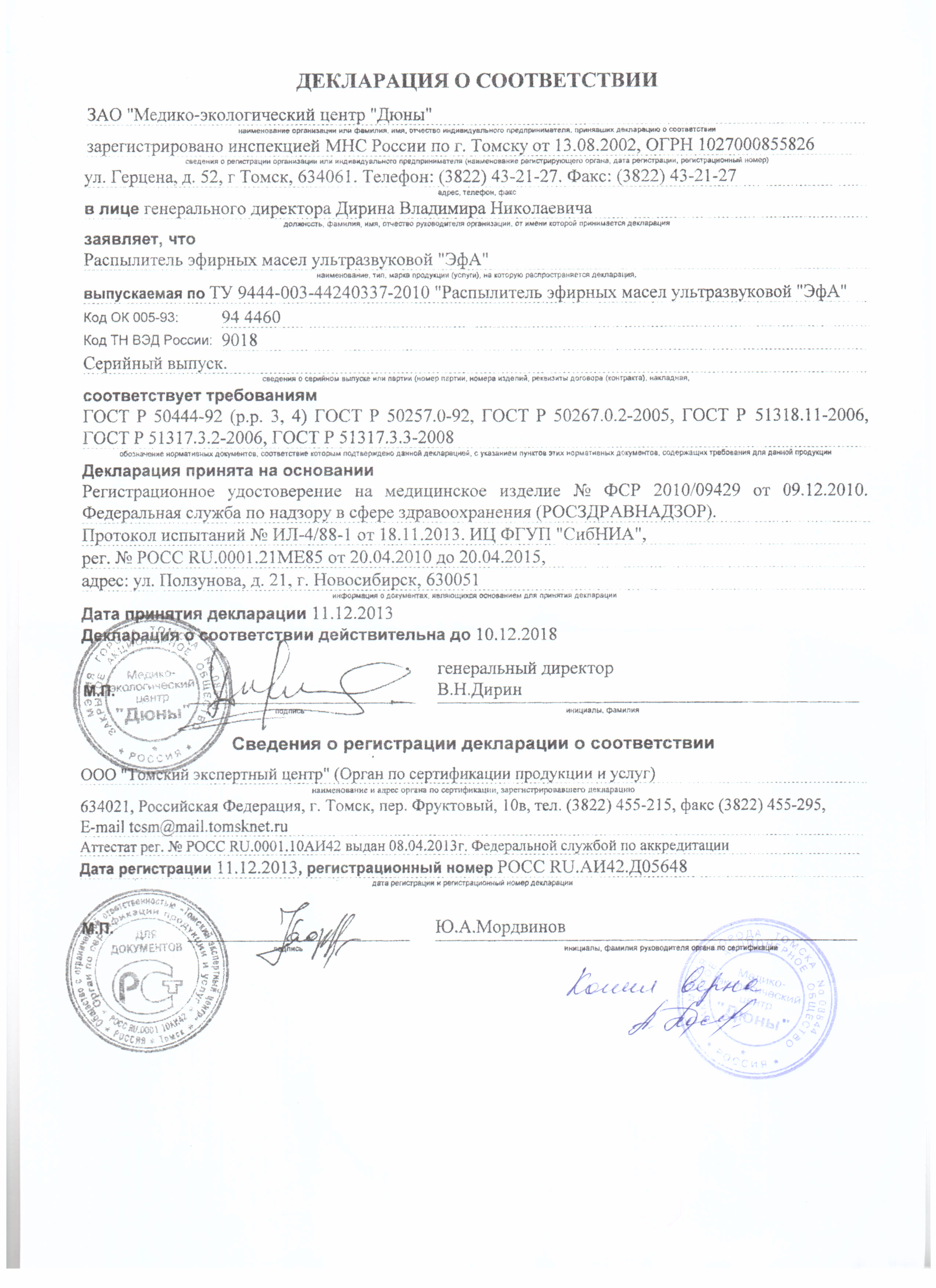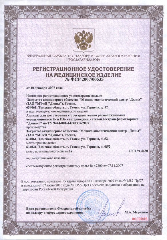 Применение изделий, выпускаемых «Медико-экологическим центром «Дюны», в широкой медицинской практике позволяет высокоэффективно осуществлять диагностику, лечение и профилактику заболеваний без применения медикаментозных средств (либо с существенным снижением медикаментозной нагрузки).